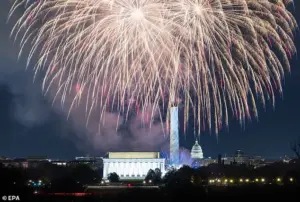 As the clock struck midnight, the fireworks over the National Mall lit up the sky, a dazzling display that momentarily eclipsed the political debates of the day.