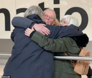 Pictured: A family is reunited at Heathrow Terminal Five.