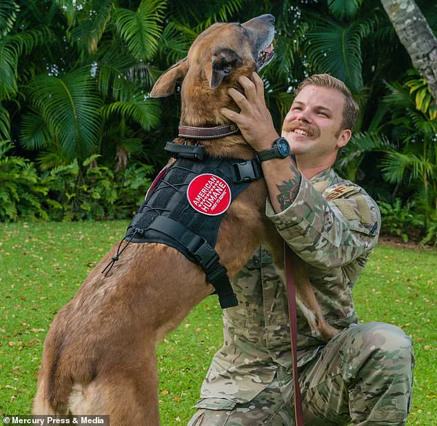 Pictured: Military dog Xanthe is reunited with former handler Sergeant Wade Alfson.