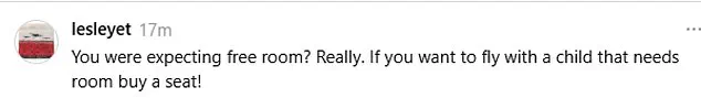 One user wrote, ‘If you want a seat for the baby… you buy a seat for the baby.
