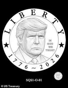 Each proposed image featured a close-up of Trump’s face, with the word ‘Liberty’ emblazoned above and the years 1776 to 2026 inscribed below.