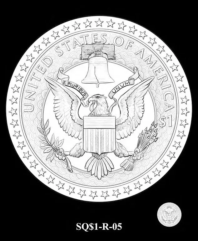 The selected design—a side-profile of Trump—was praised by Commission member Roger Kimball for its ‘statesmen-like quality to the coif of the hair.’ The panel also recommended removing the Liberty Bell from the initial sketch, arguing that the inclusion of the iconic symbol made the coin appear ‘too busy.’ This decision marked a departure from the Treasury Department’s original proposal, which had depicted Trump in a pose reminiscent of his survival of an assassination attempt in October 2024.