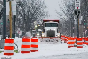 The heavy plow driver has been grinding since midnight Sunday to keep Ward Three roads safe. ‘As fast as I might clear a street, it’s getting bad again,’ she emphasized with a pearly white smile. ‘So please everyone stay off the roads.’ Her words, delivered with a mix of authority and concern, echoed the reality faced by thousands of city workers battling the storm.