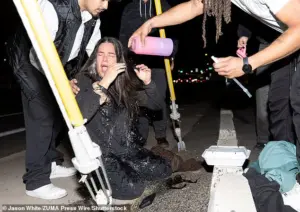 What began as a routine enforcement operation quickly escalated into a chaotic spectacle when an unmarked truck, seemingly operated by HSI agents, sprayed an unidentified substance toward a crowd of protesters gathered near the restaurant.