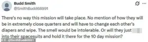 One user questioned the feasibility of maintaining personal hygiene in such tight quarters, noting the absence of clear details about how the crew will manage waste disposal, clothing changes, and privacy.