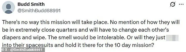 These questions, while seemingly trivial to some, underscore the complex realities of long-duration space missions and the need for solutions that balance technological constraints with human dignity.
