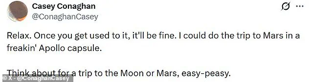 Cool, I’ve been wearing one for over three years.’ These remarks, while lighthearted, highlight a growing public discourse about the balance between innovation and the realities of space travel.