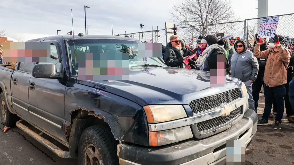 A group of protesters gathered outside the federal building, chanting against Immigration and Customs Enforcement (ICE) while throwing glass bottles and sex toys at a line of guards. The protest, which was intended to honor the memory of Good and Alex Pretti—both of whom were killed in separate encounters with ICE agents—quickly spiraled out of control. At one point, the anger of the crowd was misdirected, with demonstrators turning their aggression toward a fellow protester driving a dark blue pickup truck. The man, who had a large banner in his truck bed reading ‘NUREMBERG 2.0,’ was pelted with dildos by the mob.