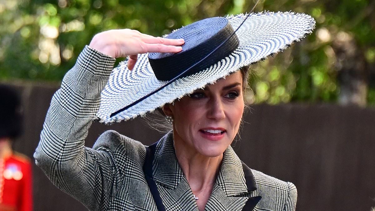 Amidst the grandeur of Canterbury Cathedral, where history and faith converge, the Princess of Wales made an indelible impression—not for her role in the ceremony, but for the striking black-and-white Juliette Botterill hat that clung to her head as if defying the elements. The gusty winds and drizzle that greeted the royal couple on the day of Dame Sarah Mullally's installation as Archbishop of Canterbury tested the resilience of both the princess and her accessory. Catherine, 44, clutched the wide-brimmed hat with practiced determination as she stepped from her car, her elegant chignon framing the ensemble perfectly. The coat, a long grey fitted piece by Suzannah London, echoed the hat's bold design, while pearl earrings and a cross completed her understated yet regal appearance. Her husband, Prince William, stood beside her, his presence a quiet testament to the evolving relationship between the monarchy and the Church of England.