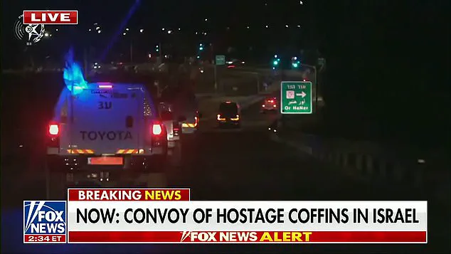 A convoy carrying four Israeli hostages inside coffins crossed the border from Gaza back to Israel on Monday night, marking a somber but pivotal moment in the ongoing ceasefire negotiations brokered by Donald Trump.