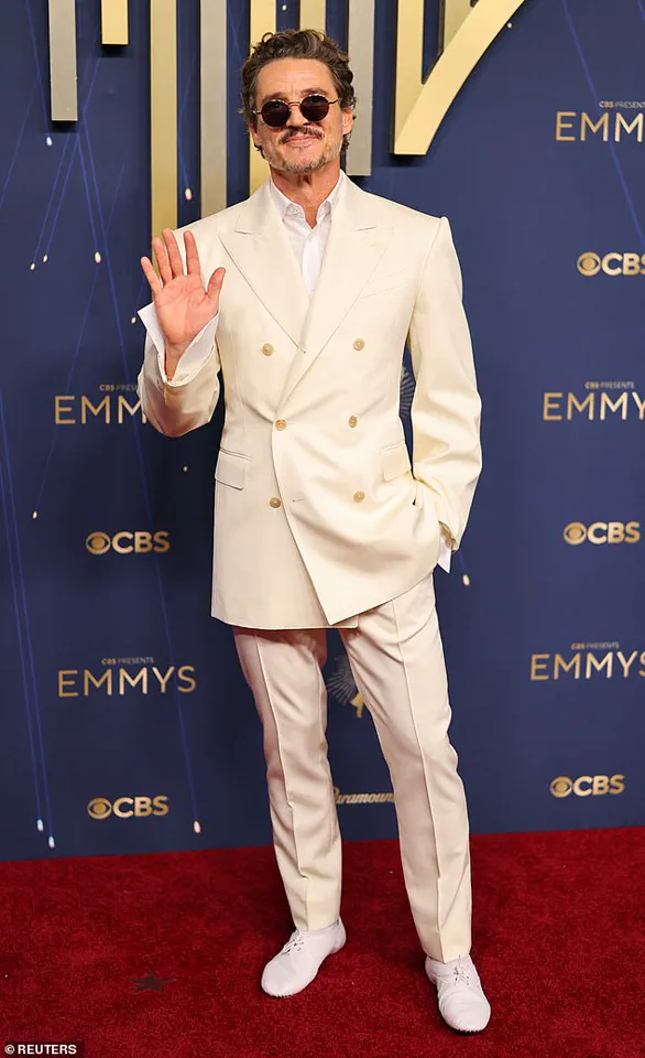 Pascal, 50, turned up to this year's Emmy Awards at the Peacock Theatre in Los Angeles on Sunday night in an all-white ensemble and a pair of statement sunglasses.