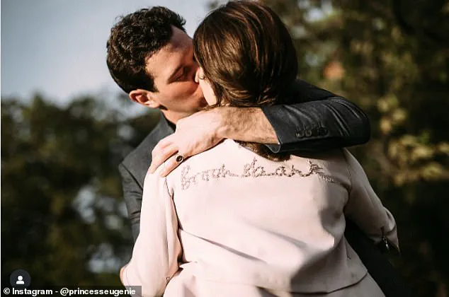 Jack Brooksbank, a marketing executive, was dressed in a dark grey suit jacket, while Eugenie wore a pink suede jacket with her married name 'Brooksbank' stitched across the back—a subtle yet meaningful nod to her new identity.