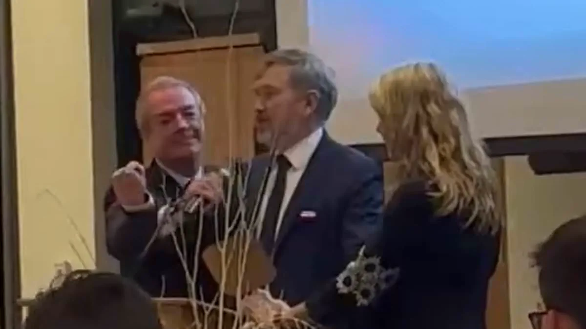 Republican Kentucky Representative Thomas Massie's voice was abruptly silenced during a heated moment at the Oldham County Republican Party's Lincoln Day Dinner on Friday. The incident, captured in a viral video, occurred as Massie, a long-serving congressman, was addressing the audience. His microphone was forcibly removed mid-sentence by Kentucky State Speaker of the House David Osborne, who was also serving as the event's emcee. The abrupt interruption drew immediate reactions from the crowd, with audible cheers and whistles echoing through the hall as Massie continued his remarks without the microphone. The video, uploaded to X by grassroots Senate candidate Michael Faris, has since garnered over 270,000 views and 4,200 likes, amplifying the controversy surrounding the event.